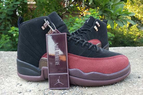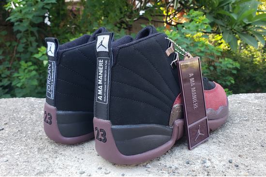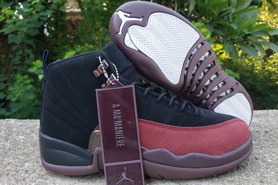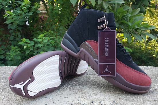 The black design of A Ma Mani é re x Air Jordan 12 has chosen the combination of suede and suede, which is quite textured. There is also a snake like treatment near the midsole. The elements of AMM are put on the heel and tongue. This pair of AMM x Air Jordan 12 is made of burgundy and black, and the upper is made of nubuck leather and suede panels, showing the brand heritage of both sides in a calm manner.