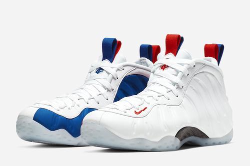 The outer side of the Air Foamposite One WMNS USA shoes is presented with a pure white upper, and the inner side is embellished with eye-catching red and blue jacket design. The matte foam upper shows a distinctive texture. In addition, the double-loop design of the tongue and heel is also very eye-catching. With the iconic logo on the heel, the embroidered Swoosh Logo on the toe also echoes in black, and the overall temperament is very outstanding.