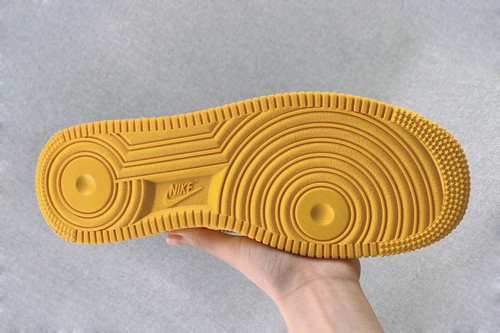 OW X Air Force 1 University Gold shoes with yellow as the main tone, with silver Swoosh Logo embellished with black slogan, showing the deconstructed design of the joint series of signs Swoosh side sewing Logo is very conspicuous on the blue shoes, showing the deconstructed design of the sign, The highlight is the silver Swoosh on cheap air force one shoes online the side of the shoe, which shows special status.