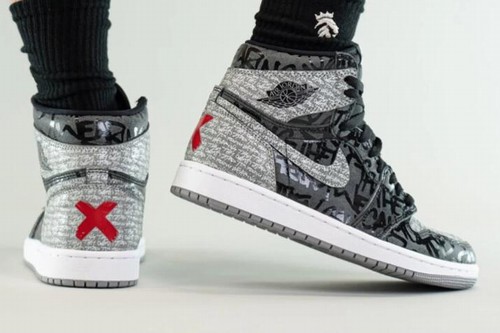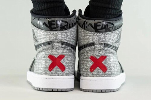 Air Jordan 1 High OG Rebellionaire comes in a black and gray main color that looks like the classic black and gray \’Shadow\’ color scheme followed by a bold X paint doodle to emphasize the no-wear theme. The most striking feature is in a black and gray pattern with the phrase \’They can\’t stop you from wearing them\’ emblazoned across the body, in keeping with the old rebel theme.