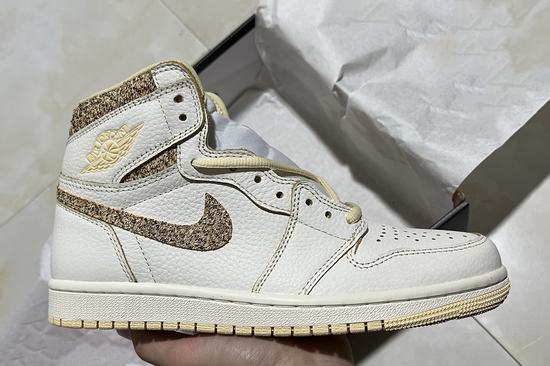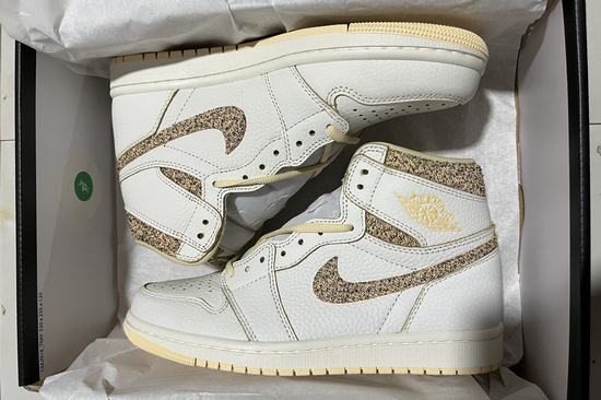 Air Jordan 1 High OG \’Vibrations of Naija\’ This pair of shoes will also become a member of the Jordan Brand \’Craft\’ series. This pair of shoes is mainly in light vanilla and gray color schemes, and the overall body of the shoe continues the classic shape of the high-top Air Jordan 1 , the main body is made of leather, Swoosh Logo and blended materials. The Logo tongue of the shoe, the \’flying wing\’ Logo on the side of the upper and many other places are also uniquely made of blended materials. The Air Jordan 1 High OG Vibrations of Naija shoe body also uses The old design is covered with a large area of white leather as a whole. The Swoosh on the side and the upper part seem to be made of special fabric materials, creating a unique retro atmosphere!
