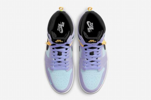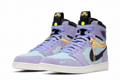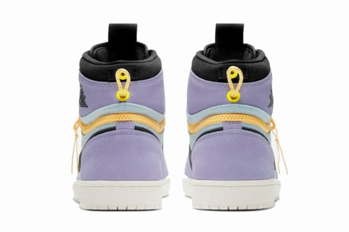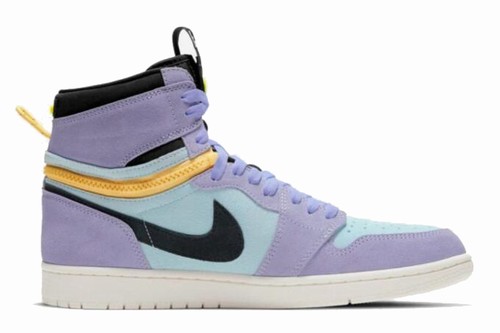 Air Jordan 1 High Switch Purple Pulse is designed with a lake blue upper and a lilac frame to create a visual sensation. The insoles are printed with the words ZOOM AIR, indicating that the model has ZOOM.