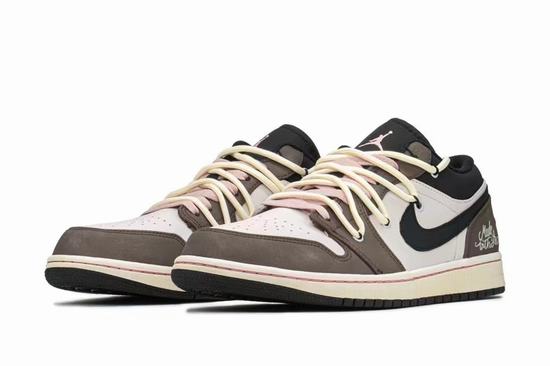 The Air Jordan 1 Low Mocha Brown is an innovative shoe that looks great. The Air Jordan 1 Low features a popular silhouette, timeless details, and strategic colors. Built in Air cushioning Natural leather and synthetic upper with Wings logo on the heel Foam midsole Rubber traction.  The upper of the Air Jordan 1 Low  Mocha Brown Valentine\’s Day is mainly made of beige top leather, and the frame of the cheap jordans is covered with mocha brown suede. The low-key and steady body enriches the layers of the whole pair of shoes. The tongue, laces and collar are designed in black, and the pink laces are lined with deconstructed straps.