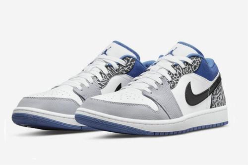 Air Jordan 1 Low True Blue adopts the classic \’True Blue\’ concept of Air Jordan 3. Air Jordan 3 as the design inspiration, crack design elements, the second half of the shoe body with a large area of gray and black crack coverage, coupled with white and blue body, Logo, outsole, the overall effect is quite good.