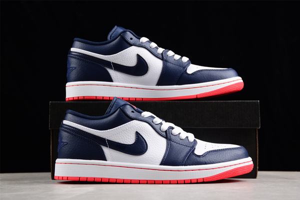 AIR JORDAN 1 LOW perfectly combines top-level craftsmanship with new technology, characterized by breathability and durability. The classic Jumpman Logo is added to the heel to highlight the attributes of the entire pair of shoes. Air Jordan 1 Low uses a hard rubber outsole combined with a design of curved grooves and circular patterns to bring first-class traction and wear resistance. The extraordinary effect will make every shot of you amazing. The upper is made of first-layer cowhide and artificial leather, which brings excellent comfort and wear resistance. The ventilation hole design of the upper improves the air circulation when wearing. The cup-shaped midsole provides excellent fit. The classic design of Air Jordan 1 Low can be easily matched with different styles to help you show your outstanding style. Embedded Air cushioning technology is added to the sole to create a lightweight cushioning experience. The combined upper is durable and shows high-quality style. The hard rubber outsole provides strong traction on a variety of surfaces. The \’AIR JORDAN Wings\’ logo on the heel shows the majestic and majestic kingly style. The number 23 is embroidered on the tongue, flaunting its noble lineage. The low-top design creates unprecedented flexibility in the ankle, and the lighter texture makes your feet feel as light as nothing. The cup-shaped midsole perfectly fits the shape of the foot and provides reliable protection for your feet with excellent shock absorption. The excellent support and stability help further enhance your strength. AIR JORDAN 1 LOW is equipped with a built-in AIR cushion. The soft touch makes the contact between the feet and the ground more natural and smooth, which can minimize the impact and reliably protect the feet.