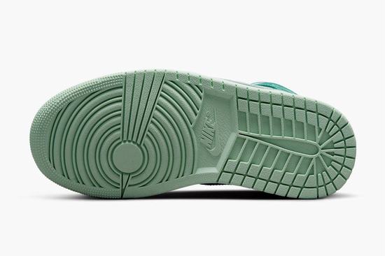 Air Jordan 1 Mid Marine Green draws design inspiration from the original model, using a simple and elegant design concept, familiar with a touch of novelty, this Air Jordan 1 upper is made of leather, with a white base and a marine green body frame. The value is quite refreshing. The Swoosh on both sides of the shoe body, the tongue Tag and the wing logo on the side of the upper are light green to enhance the cheap retro jordans sense of hierarchy. The white midsole and light green rubber outsole complete the entire design, echoing the color of the shoe body, and the color structure is unified and coordinated.
