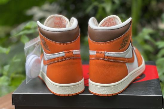 Air Jordan 1 High OG Starfish comes in a white, Starfish, Cocoa wow and sail color scheme. The Air Jordan 1 product is similar to the popular Shattered Backboard block and features a Sail base with an orange cladding and rubber outsole. Other cheap  jordans details include exposed stitching with a black collar. Air Jordan 1 High OG Starfish Orange High Top basketball shoes. The matching color is white background color with orange frame and Swoosh, similar to AJ1 white button broken color. The shoe body is covered with leather shoe material. Please see the letters in the watermark picture when wearing the shoes.