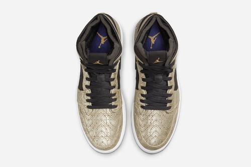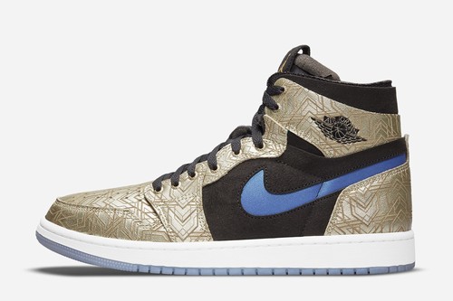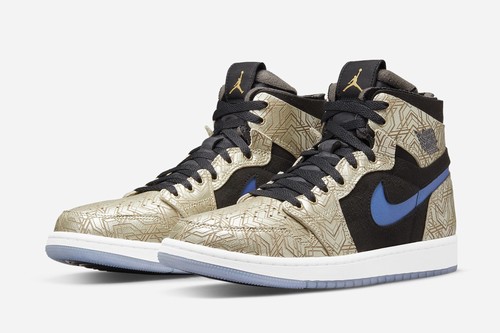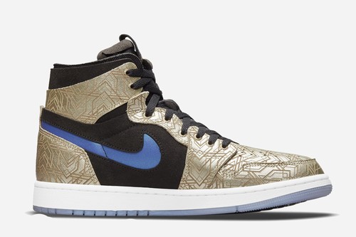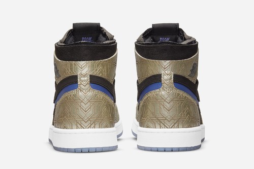 Air Jordan 1 Zoom Air CMFT GC The whole shoe body adopts champagne gold as the main tone, with laser texture, the visual effect is very outstanding. The vamp is made of metal patterns that resemble the evolution of armor equipment. Combined with high-quality materials, the vamp Swoosh is presented in bright blue and purple. The Zoom Air in the midsole ensures the cushioning and comfort.