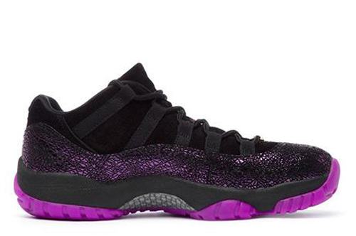 This low-top Air Jordan 11 features a Black suede upper highlighted with a textured