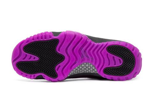 Purple patent leather overlay. A Black midsole and Purple rubber outsole adds to the