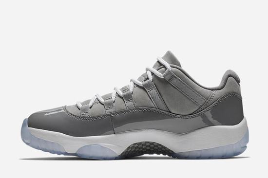 Air Jordan 11 \’Cool Grey\’ Cool grey color as a high top Air Jordan 11 popular color, Low top version of the market naturally attracted attention, cool grey theme is not only refreshing, the foot is more versatile, but also after Easter Air Jordan 11 low, Another pair of shoes favored by sneaker players. This AJ11 Cool Grey still uses ice blue crystal outsole and grey leather upholstery all over,