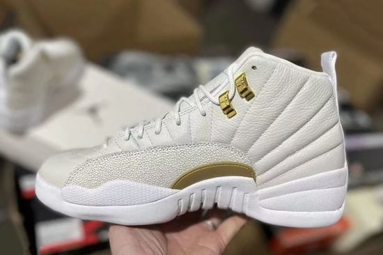 The Air Jordan 12 OVO White upper is composed of high-quality white leather and fine pearl fish skin, with gold buckles embellished, becoming the most highlighted core element, and the luxury texture instantly explodes!
