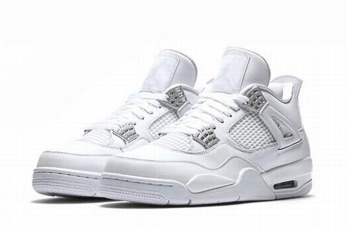 The air jordan 4 \’pure money\’ is dressed in pure white, and more leather details are presented to show its unique identity, while the details flash precious metal luster with chrome accessories. When you open the heel panel, you can see that there are hidden embroideries in the word \’pure $to fit the theme of pure money. White vamp, only with a small amount of silver decoration in the tongue, heel logo and other details, integrated, giving a clean and pure feeling.