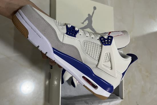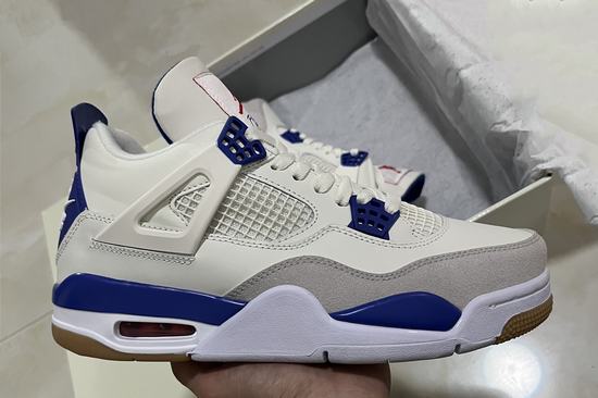SB x Air Jordan 4 Sapphire adopts Air Jordan 4 as the overall design blueprint. The shoe body is covered with a large area of white. Meanwhile, the material is mainly leather, supplemented with off-white suede material wrapping. Shoelace buckle, heel and bottom of the shoe compared to the previous cheap jordans released effect picture, the overall blue is light, more fresh and simple. Finally, the raw rubber outsole is matched to highlight the function of skateboard co-branded shoes. The raw rubber material suitable for skateboarding has a very good grip. The retro flavor of the whole pair of shoes is quite strong, and the overall visual effect is more fresh and pleasant.