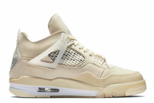 The Air Jordan 4 SP WMNS Sail adopts beige tones as a whole. The upper is presented in leather and gauze. The breathable mesh, lace buckle and rubber frame of the shoe body are presented in a translucent texture, making the visual creation quite refreshing. Air Jordan 4 SP WMNS Sail\’s iconic breathable mesh on both sides, the frame of the authentic cheap jordan shoes body and the heel part are supplemented with translucent rubber embellishment, creating a crystal clear jelly texture. The iconic printed font on the midsole echoes the words \’AIR\’ on the inside of the feet and the midsole of the heel. Not only the tone is refreshing, but the overall details are also quite rich!
