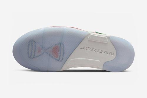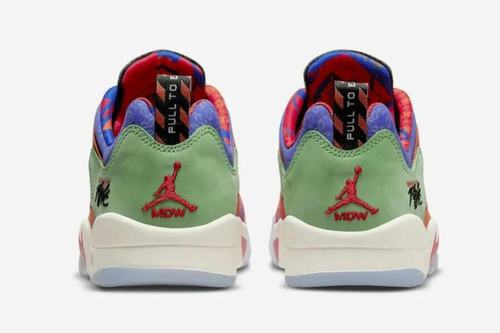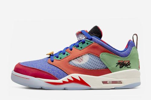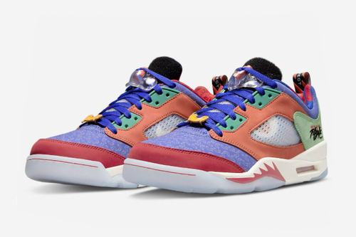 Michael\’s Air Jordan 5 Low was inspired by his love of airplanes, sharks, and macaroni and cheese — the toe and collar, as well as the matching Dubrae, all feature a bump design.