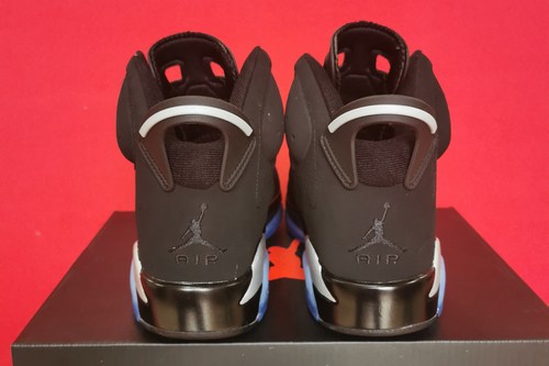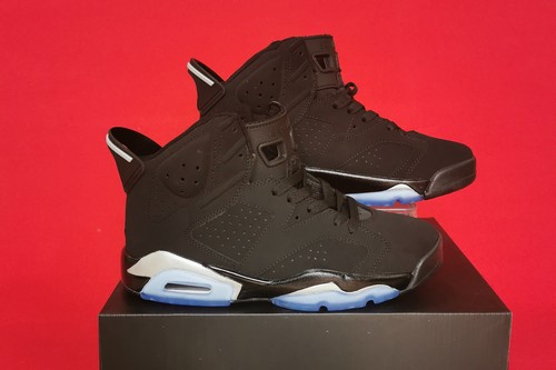 The air jordan 6 chrome features a black suede upper with metallic silver details. The air jordan 6 Chrome is low-key without losing its texture and highlights. The classic black suede upper is complemented with silver details, and the blue crystal bottom is used to show you a simple and uncomplicated image.