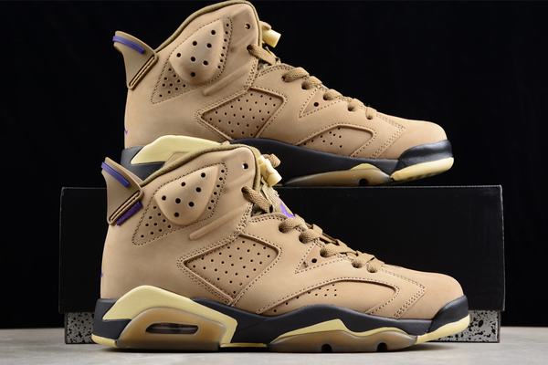 The Air Jordan 6 Gore-Tex “Brown Kelp” is a new model inspired by the ACG Air Mowabb. Brown Kelp, Team Gold, Shadow Brown, and Palace Purple color scheme. The material of the shoe body is covered with Gore-Tex waterproof shoe material, so you don’t have to worry about rain or snow. In terms of color matching, it is presented in a work-style military green with eye-catching purple cheap air jordans embellishment details, which is simple yet stylish. Gore-Tex material covers the upper for weather protection, with purple and orange accents on the tongue and lining. A speckled midsole atop an icy translucent outsole completes the design. The earth-colored shoe body with purple embellishments is not only full of sexy attributes, but also exudes a charm that looks like TS co-branding. Followed by the Gore-Tex label, it further highlights its technological attributes. The Air Jordan 6 Gore-Tex Brown Kelp features a uniform finish from the toe to the sports car-style clip at the heel. The supportive colorway throughout the sneaker sports a “Palace Purple” look that contrasts nicely with the understated brown that covers much of the GORE-TEX Jordan 6. The sole also comes in a variety of fall-ready colors, further expanding on the off-court heritage of the Air Jordan line.
