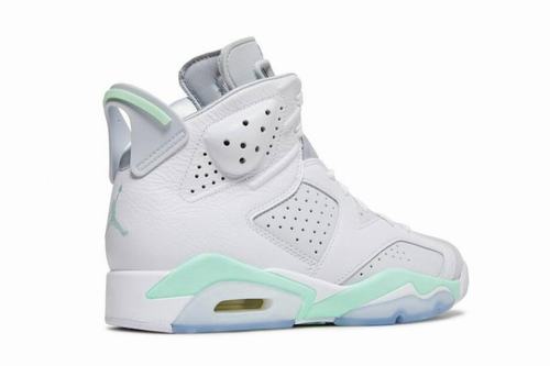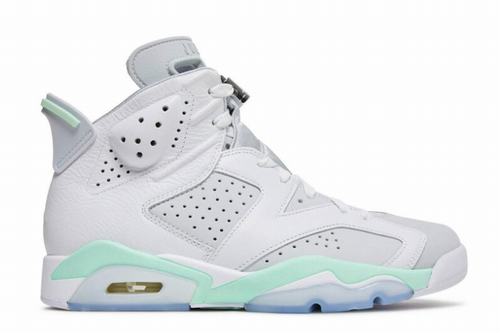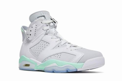Air Jordan 6 WMNS Tiffany Blue uses white, pure platinum, and mint foam color scheme. This Air Jordan 6 is characterized by a pure platinum base and a white covering constructed in suede, matte, and a mixture of leather materials. The highlight of the cheap jordan shoes is the mint foam, which the Jordan brand calls \’Tiffany Blue\’ on the lace locks, heels, midsoles and brand insoles. The translucent outsole completes the design.