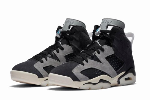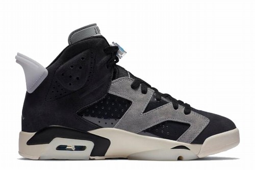 Air Jordan 6 Smoke Grey uses black gray and gray cool colors as the main feature, and the temperament is quite cold and hard. The shapes of leather, suede and patent leather make black particularly outstanding. The last ivory white mid and outsole neutralizes the coldness and brings a sense of traction and traction.