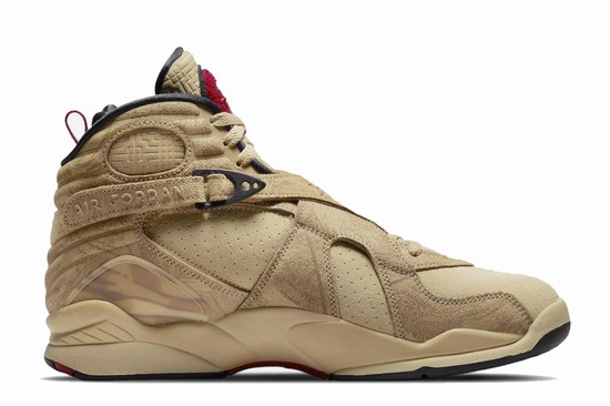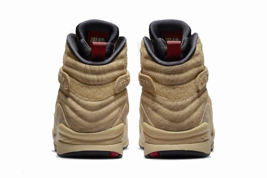 Air Jordan 8 Rui Hachimura shoe body texture level is quite rich, including suede, cracked leather and other materials. Shoe body is dressed up with wheat color, let a person associate the figure of tatami, bind the place to contain mottled dark grain, present a few minutes of Japanese department of primitive style. Tongue is interspersed with ethnic texture and red Yicura 塁 personal Logo, in addition to the above is interspersed with shake grain material, rich details of the shoe body. The inside of the cheap jordans shoes tongue is embroidered with the words \’Black Shi\’, presenting a thick Style of Japanese samurai. Insole into Japanese style painting and basketball elements, it is worth mentioning that this is also matched with a special shoe box and exclusive lining paper, also full of Japanese and eight village 塁 elements, highlight high specifications.