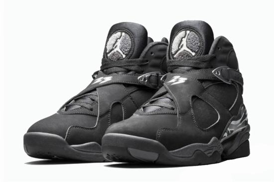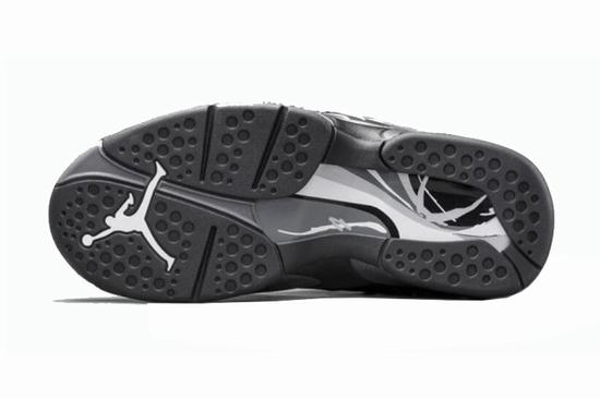 In the same tone as the Kanye West shoes, the Air Jordan 8 Chrome features a tight black background to highlight the texture and metallic details, and a signature line in the midsole to dress up in black and grey, which is full of unique charm.