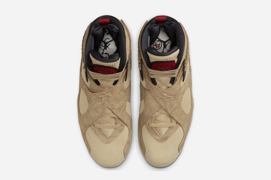 Air Jordan 8 Rui Hachimura shoe body texture level is quite rich, including suede, cracked leather and other materials. Shoe body is dressed up with wheat color, let a person associate the figure of tatami, bind the place to contain mottled dark grain, present a few minutes of Japanese department of primitive style. Tongue is interspersed with ethnic texture and red Yicura 塁 personal Logo, in addition to the above is interspersed with shake grain material, rich details of the shoe body. The inside of the cheap jordans shoes tongue is embroidered with the words \’Black Shi\’, presenting a thick Style of Japanese samurai. Insole into Japanese style painting and basketball elements, it is worth mentioning that this is also matched with a special shoe box and exclusive lining paper, also full of Japanese and eight village 塁 elements, highlight high specifications.