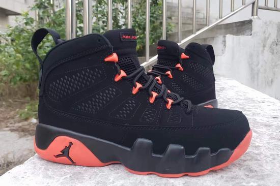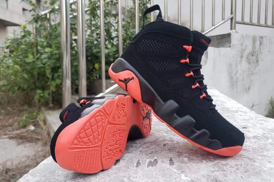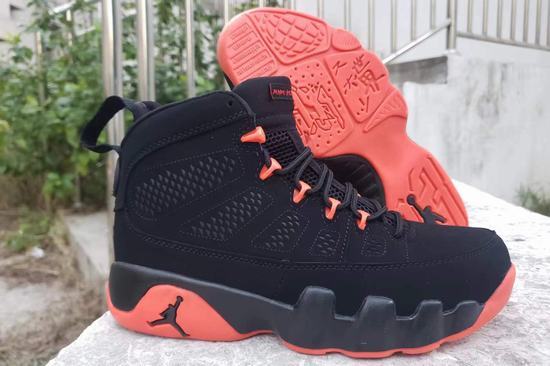 The upper of the Air Jordan 9 Black Orange shoes is still mainly black leather, and the design pattern of the shoe body is clearly visible, while the cheap jordan 9 retro bottom and the heel are covered with Orange-colored patent leather. 23\’ uses black. Such an overall design is not only more eye-catching under the light, but also more dynamic. The black Jumpman logo, shoelaces and shoe handles show a classic and retro temperament. Not only is the color matching classic and full of vitality, but the texture is also very outstanding. The unique Jumpman logo and 23 embroidery on the heel highlight the extraordinary significance, with a strong retro atmosphere and classic temperament.