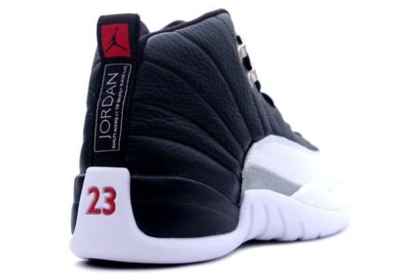 Playoff 12s were released on February 14, 2004,and recently Jordan 12 Playoffs made a comeback in 2012. The retro Playoff 12s feature a black leather upper with lizard skin print on the white portion of the upper. The red in the official colorway refers to the accents, including the Jumpman logo on the tongue. The design of theretro 12 playoffs is based on the Nisshoki, which is the Japanese rising sun flag, as well as a 19th century womens dress boot. It features stitched leather portions which radiate outward like the sun’s rays. The bottom features a white colorway, with black inserts which feature a modified herringbone pattern, which is great for grip and traction.