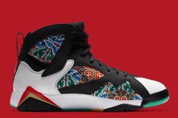 The Air Jordan VII was released in 1992 with a new design by Tinker Hatfield. This shoe introduced the huarache technology to create a sole with more grip to the basketball court. A few things were no longer featured on the new model, such as the visible air sole, the Nike Air logo, and the yellowing soles. This was the first Air-Jordan in the line that did not have any distinctive \’Nike Air\’ on the outer portions of the shoe. The \’Nike Air\’ can be found on the in-soles.