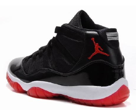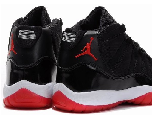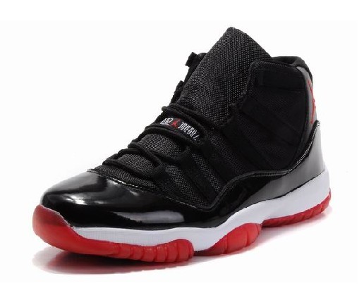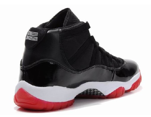 - The retro bred 11s are the same as the original versions, without visible changes. Bred 11s are simply beautiful shoes, as they feature an all black upper, which features a black patent leather at the base, along with a red Jumpman logo at the ankle, and a carbon fiber “23″ at the back heel. The white midsole and red, translucent outsole are both really nice touches that seem to grab your attention. Besides having the looks down pact, some of the features of the shoe include a carbon fiber spring plate, ballistic nylon uppers, a Huarache inner sleeve, quick lace system, carbon fiber sheath and air sole.