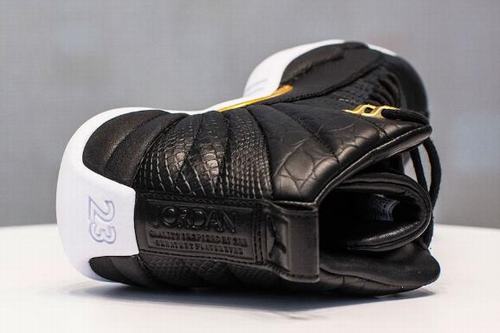 The pure black dress body, complemented by gold buckles and gold bezels, presents a rich Air Jordan 12 “Wings” with a sense of sight and OG.