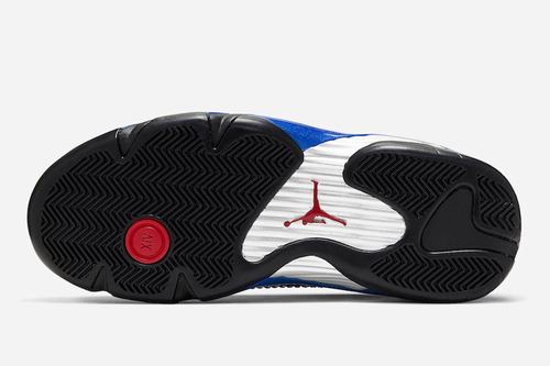 This time, the \’Ferrari\’ shoe model was chosen as the model. Air Jordan 14 brought two matching colors, white red and black blue, and Michael Jordan\’s leather jacket as the inspiration source, showing neat metal beads in all directions of the shoe body.