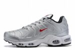 The Air Max Plus \’Tn\’ version upper is made of one-piece leather, and there is a huge \’Tn\’ font on the heel. The midsole TPU is bright and colorful.