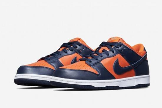 The Dunk Low SP Champ Colors upper is made of low-key navy blue and bold orange, and the two colors are spliced together to create a dunk shoes for cheap strong retro street style.
