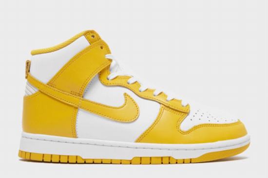The Dunk High \’Dark Sulfur\’ shoe is injected with vibrant bright yellow color on the basis of all-white leather, covering the toe, shoelace eyelets, shoelaces, Swoosh Logo, heel edge, inner and outer soles, etc. The classic spirit that Dunk High stands for. Dunk High \’Dark Sulfur\’ will be added to the 2021 Dunk Collection, which will be released in Spring/Summer. Dressed in a white and dark sulfur color scheme. This Dunk High features a White leather base with matching laces, tongue, and midsole. Yellow overlays, Swooshes, tongue tab, inner lining, and rubber outsole complete the design. The Dunk High Dark Sulfur in lemon yellow color, the upper is made of classic leather material, which cheap dunks for sale highlights the high-quality texture. The body of the shoe is based on white, and the frame of the shoe body is covered with lemon yellow. The Swoosh on the side of the shoe is also outlined with the same lemon yellow, giving people a fresh visual effect and preparing for autumn and winter. The shoes are very affordable! The sole is soft, very thick, and the workmanship is very fine. The size is just right, the quality is also good, comfortable to wear and easy to walk.