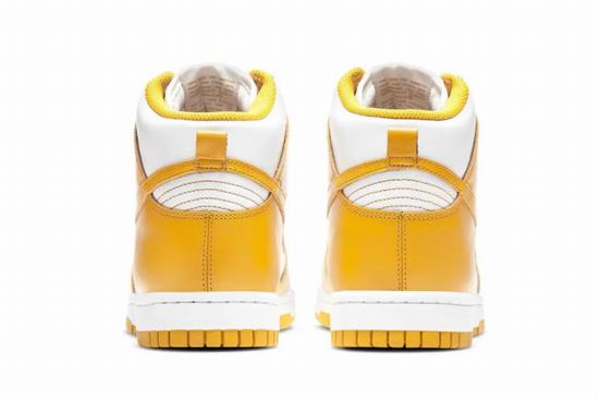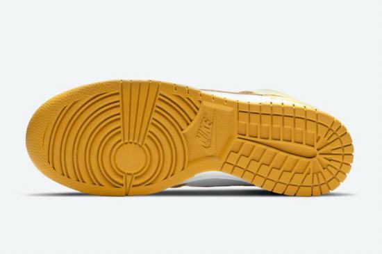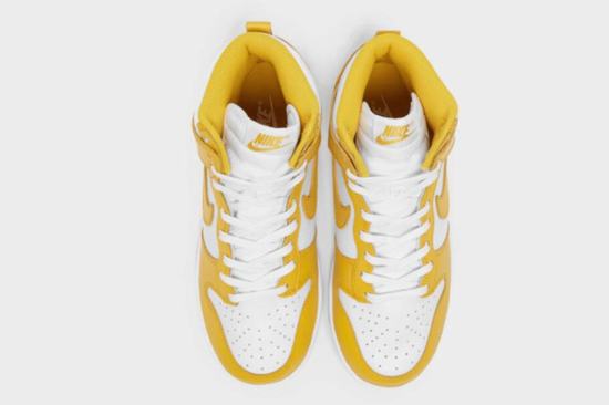 Dunk SB High Dark Sulfur new color scheme It still adopts the classic and simple campus color scheme design, and it is presented in bright yellow and white, which is very suitable for the upcoming summer collocation. The shoe body of this shoe is mainly made of yellow leather and sail white leather. The Swooshes on the side of the shoe are embellished with yellow, while incorporating modern shoemaking technology to create a comfortable foot feel; The contrast effect shows the charm of clarity and simplicity.