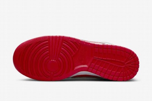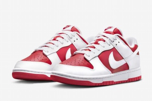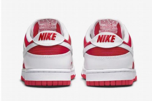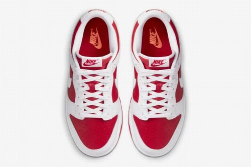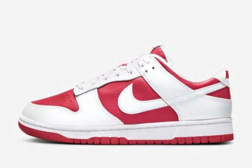 Dunk SB Low Championship Red features an authentic campus style, and Dunk Low\’s \’White University Red\’ appears in two shades. Constructed of leather, the upper part of the shoe sports a university red finish on its backing, covering the entire white leather. The perforation on the toe box includes breathability, while under the foot, a two-tone rubber cup bottom includes a concentric university red rubber outsole for traction.