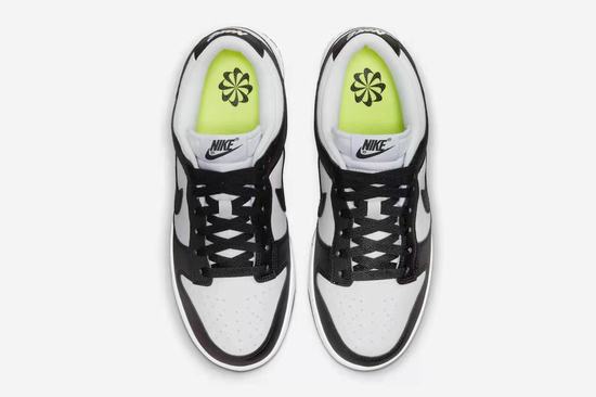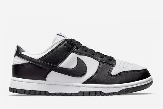 Dunk Low Next Nature is made of at least 20% recycled materials by weight, updating the classic and maintaining the original integrity while minimizing the impact. Dunk Low is made of synthetic leather, integrating the retro cheap dunk shoes ballet style and simple life into the street. The brand\’s \’Move to Zero\’ windmill logo appears on the Volt insole to complete the design. The shoe body is covered with pure leather, simple black and white splicing design, black ground rubber sole, and white midsole.