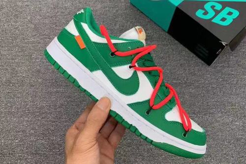 The Dunk SB Low Team Green is fused with crisp green leather and white mesh. The 0ff-white co-branded signature accents the heel, tongue and inner side of the shoe, adding the finishing touch to this well-crafted tribute shoe.
