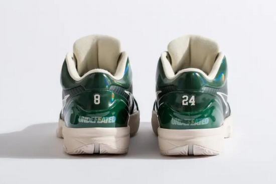 The UNDEFEATED is unveiling the Kobe 4 Protro Protro line in collaboration with Kobe, featuring patent leather vamps in the Lakers, SUNS, Spurs and Bucks\’ original color scheme. In this co-branded series, UNDEFEATED selected Kyle Kuzma, Giannis Antetokounmpo, Devin Booker and DeMar DeRozan respectively, and retained the shiny patent leather upper design of the Yuan Dynasty. The back part will be decorated with Bryant\’s No. 8 and No. 24 embroidery, and the words UNDEFEATED will be added to make it more collectible. The pair were a steady olive green inspired by the Bucks\’ jersey color. The color scheme is very understated, but the patent leather upper makes this pair of green stand out.