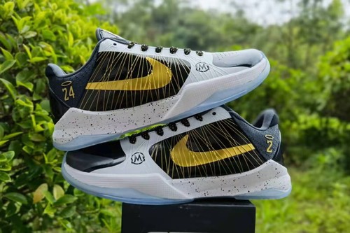Zoom Kobe 5 Black White Gold Angel Men\’s