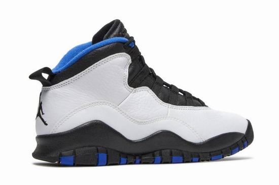 The Air Jordan 10 OG made its debut in 1995 as part of the five-piece City Pack and was relaunched in December 2018 and relaunched in December 2018. This version retains the OG structure, with white knurled leather uppers and black contrasting colors complementing the tongue, throat, LACES and midsole. A burst of royal blue on the collar lining and rubber outsole adds a finishing touch to the Orlando Magic\’s team colors. The Air Jordan 10 Orlando was introduced in 1995 as one of five team colors in the \’City Collection.\’ In 2018, the Florida-focused look returns in a family-friendly size, featuring the same white knurled leather uppers and contrasting black accents on the tongue, LACES and midsole. Royal blue adds a touch of color to the collar, lining and rubber outsole