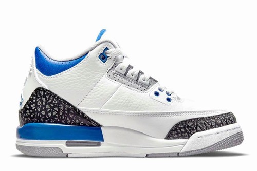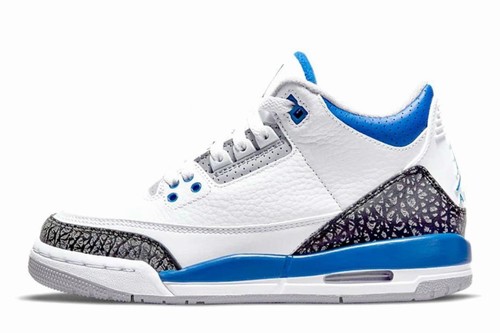 The new color-matched Air Jordan 3 Racer Blue shoe body uses white as the main tone, supplemented by black and navy blue. The overall appearance seems to be very similar to the Air Jordan 3 \’Sport Blue\’ launched in 2014, but it is equipped with a completely flipped color scheme. The upper is made of white leather, supplemented by blue and classic bursts. The toe, the upper part of the shoelace eyelet, the heel guard and the collar of the shoelace, and the gray leather injected into the middle of the cheap real jordans shoelace eyelet also contrasts with the cracked road. Finally, the classic? Jumpman Air Logo is engraved on the heel to perfectly highlight the identity .