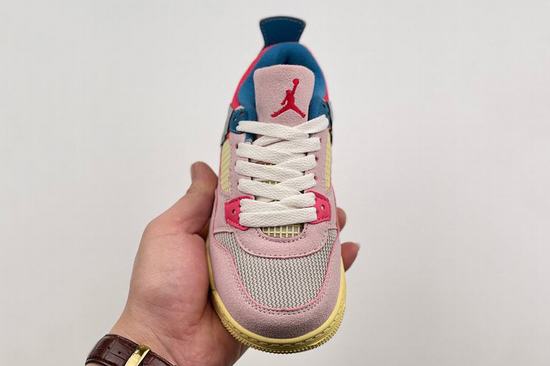 The Air Jordan 4 was designed with a combination of leather and nylon mesh. This design was very popular at the time. The main purpose was to reduce the weight of the shoe and improve the comfort of wearing. This shoe adds a fixing device extending from the upper to the upper, which is connected to the laces. The 4th generation still uses the air cushion with exposed rear palm and medium capacity, which was already the air cushion with the best shockproof effect at that time. The midsole configuration has not changed much, and the configuration of the front and rear separated soles is still maintained. The inside of the shoe is made of urabuck, a highly durable material. The mesh material, coupled with cheap jordans for kids  the obvious NIKE-AIR patented air cushion, makes the style of the three-quarter gang more evolved. The logo of the trapeze was transferred from the back of the shoe to the tongue, and all black was used as the main design of the sneaker, which changed the design concept of basketball shoes from then on.