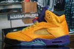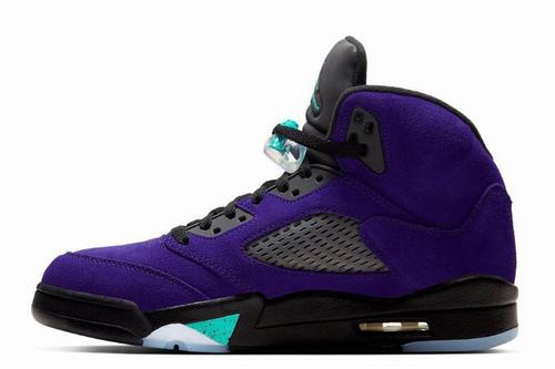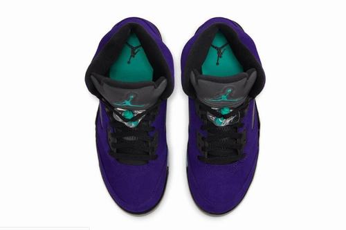 Air Jordan 5 ushered in the 30th anniversary of its birth, this pair of classic trapeze boots born in 1990 ushered in the 30th anniversary celebration. Air Jordan 5 Alternate Grape reproduces the familiar atmosphere of \’Purple Grapes\’, reversing the mix of black and purple, and the bright purple nubuck leather upper makes it more visually impactful. Black is used on the side vents, shoelace holes, and midsole. Added lake green embellishment to the shoelace buckle and midsole The black midsole and silver-gray splash ink teeth provide a stable visual foundation for these shoes, balancing the bright colors of the shoe body, so that this color matching is easy to wear while showing personality. This pair of cheap jordan shoes is suitable for dark trousers. The silver-gray 3M reflective large tongue is the core element of the classic Air Jordan 5 and also echoes the black sole, so that the visual sense of this pair of shoes is relaxed.