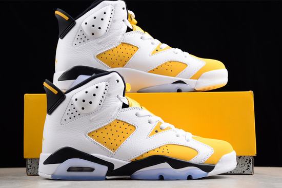 The Air Jordan 6 Retro \’Yellow Ocher\’ showcases a tri-color blend of white, yellow, and black. Constructed with a base of white leather, the shoe\’s panels are adorned with lustrous yellow suede, delivering a refreshing vibrancy to the Air Jordan 6 Retro silhouette. Yellow suede accents the toe, the white midsole, translucent outsole, lace lock, heel piece, and tongue overlay. The outsole proudly displays the Jumpman logo. The white leather panels are elegantly juxtaposed with the yellow suede on the cheap jordans on sale side panels, reminiscent of the Carmine layout. The tongue features unique overlays with a black upper and a Jumpman-branded lining. A predominantly black midsole is complemented by a lacing system, and the tongue overlay maintains its special design. The tongue, lining, Jumpman logo, heel, and midsole spoiler all sport a sleek black finish. The shoe\’s overall color scheme encompasses white, yellow, ocher, and black, with the white leather panels on the side nodding to the Carmine layout. To complete the design, a crystal-clear translucent outsole is the finishing touch.
