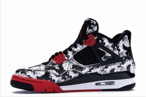 Air Jordan 4 \’Tattoo\’ is a special color created by Chinese designers. The biggest design highlight of the whole pair of shoes is the large black and white graffiti on the upper. It echoes the Tattoo tattoo theme. The ink painting style graffiti can see the basketball. pattern.