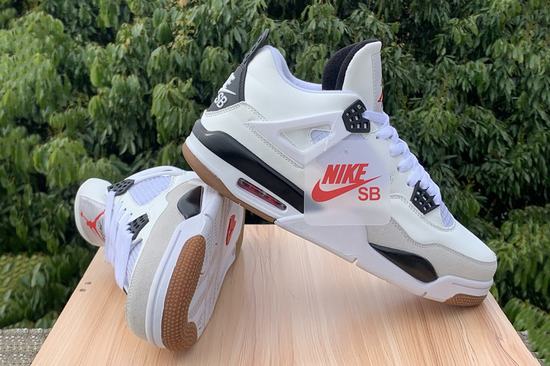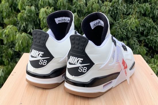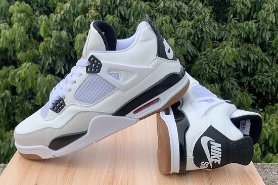 SB x Air Jordan 4 adopts Air Jordan 4 as a design blueprint as a whole. The body of the shoe is covered with a large area of white. At the same time, the material is mainly leather, supplemented by off-white suede material. The upper fence and midsole air cushion are all available, and only the SB LOGO presents joint details on the heel and insole. Finally, it is matched with a raw rubber outsole to highlight the functionality as a skateboard joint shoe. The material is different from the ordinary Air Jordan 4. As a pair of skateboard shoes, whether it is leather or composite materials, it becomes softer and more flexible. The thickened tongue padding can better protect the slippery ankle, and the insole also adds cushioning cotton to bring a soft foot feel.