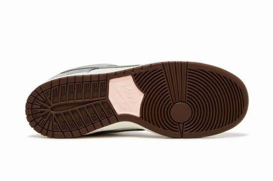 With the name of the Japanese skateboard prince, Yuto Horigome (Yuto Horigome), with the Tokyo Olympic Games to win the first gold medal of the project glory, the popularity of his, the peripheral effect is fermented in the world, in addition to the same jersey quickly sold out, but also further cooperate with the sponsor Dunk SB, Designed exclusively for their own special version of SB Dunk Low co-branded. Yuto Horigome teamed up with Dunk Low SB to showcase the Japanese pro skateboarder\’s interpretation of the timeless silhouette. The white leather upper is reinforced with a grey suede covering on the front foot and heel. The cross feather pattern on the transverse heel is accompanied by a distinctive grey leather Swoosh, while Horigome\’s name appears on the Dunk SB tongue tag. The pink suede back label is marked with Nike text, contrasted with the brown suede low cut pad collar. Underfoot, a sturdy white sidewall cup bottom rides on a grip-brown rubber outsole.